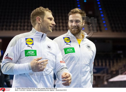 v.l. Steffen Weinhold (Deutschland), Torwart Andreas Wolff (Deutschland)