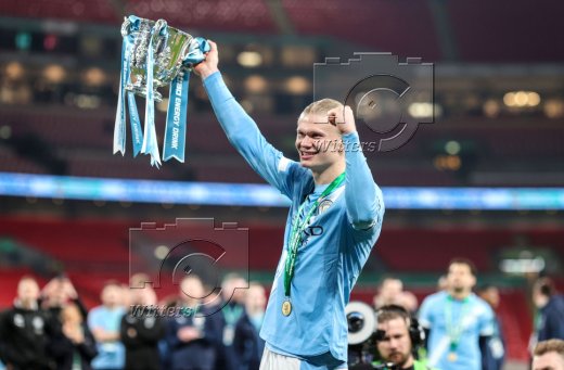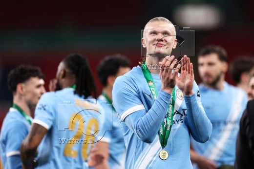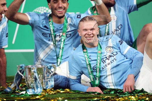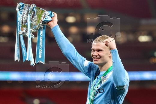 Manchester City League-Cup-Sieger 2026, Erling Haaland mit Pokal