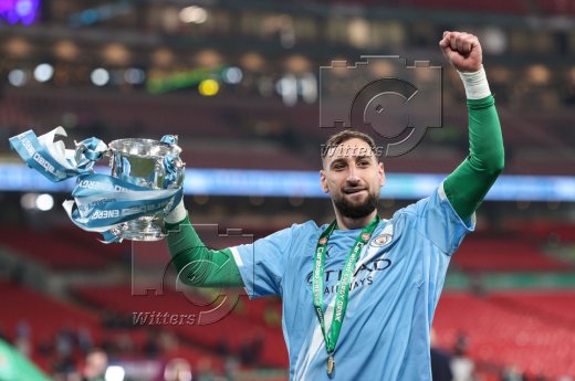 Manchester City League-Cup-Sieger 2026, Torwart Gianluigi Donnarumma mit Pokal