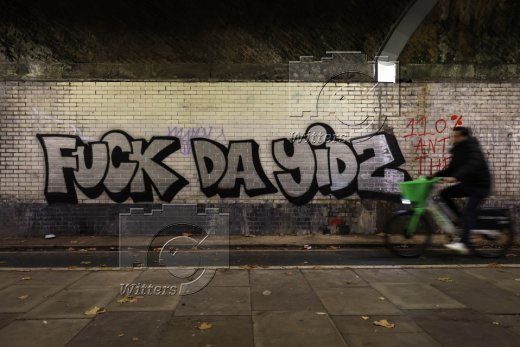 Graffiti gegen die Fans von Tottenham, die sich aufgrund ihrer Naehe zum Judentum als "Yidz" bezeichnen
