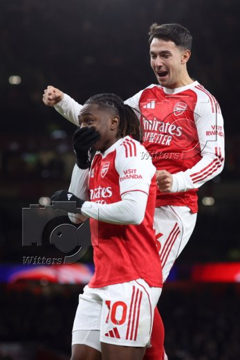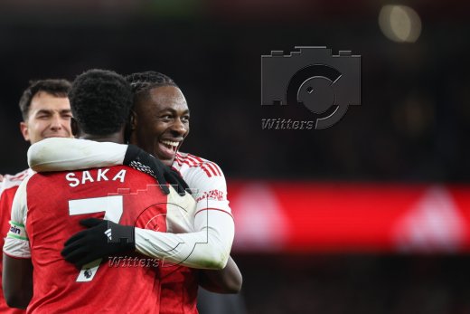 4:1 Tor, Jubel, v.l. Torschuetze Eberechi Eze, Martin Zubamendi (Arsenal)