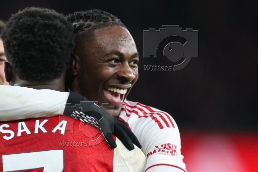 4:1 Tor, Jubel, v.l. Bukayo Saka, Torschuetze Eberechi Eze (Arsenal)