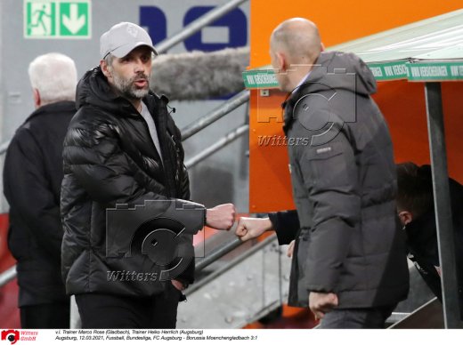 v.l. Trainer Heiko Herrlich (Augsburg), Trainer Marco Rose (Gladbach)