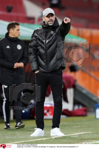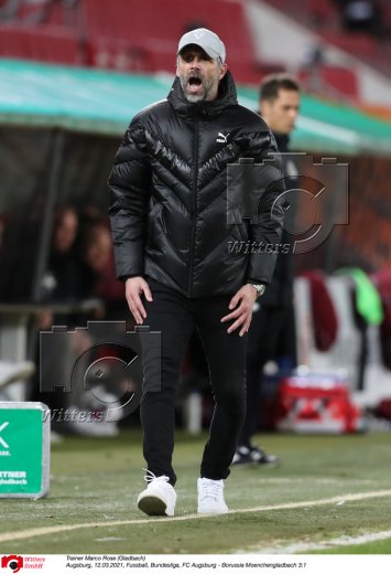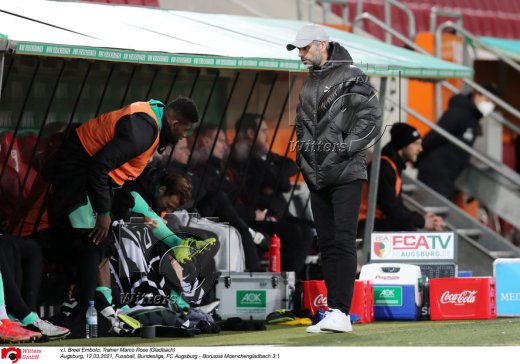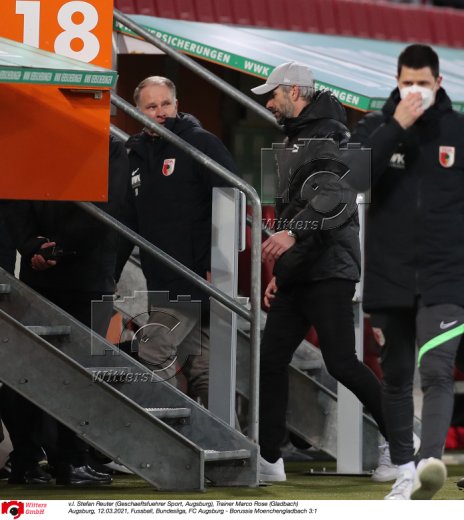 v.l. Stefan Reuter (Geschaeftsfuehrer Sport, Augsburg), Trainer Marco Rose (Gladbach)
