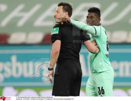 v.l. Schiedsrichter Sven Jablonski, Breel Embolo (Gladbach)