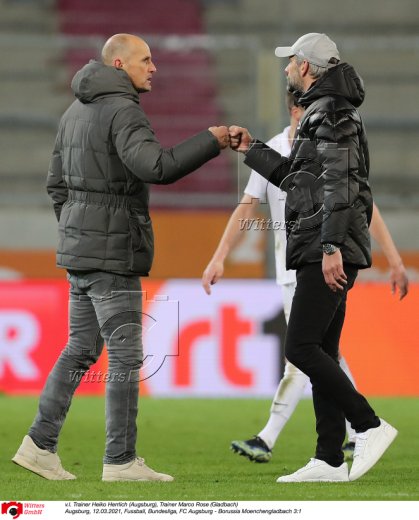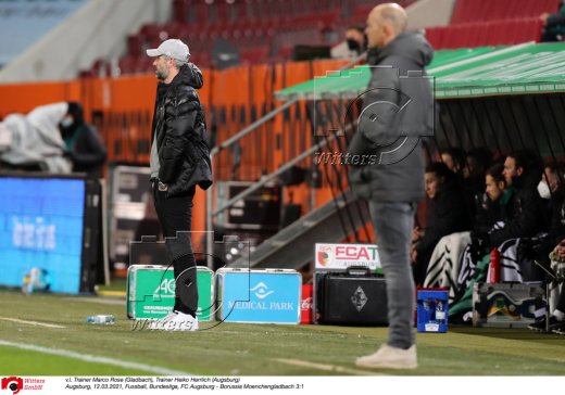 v.l. Trainer Marco Rose (Gladbach), Stefan Reuter (Geschaeftsfuehrer Sport, Augsburg)