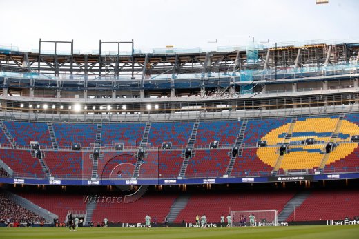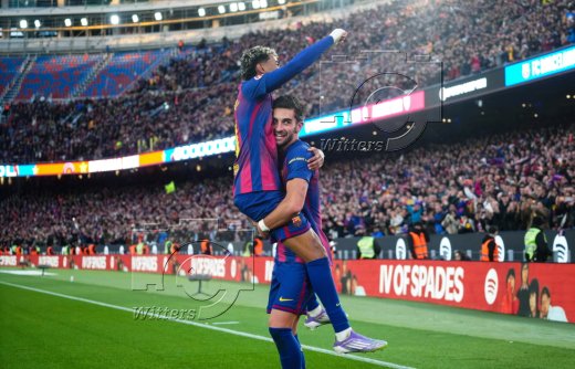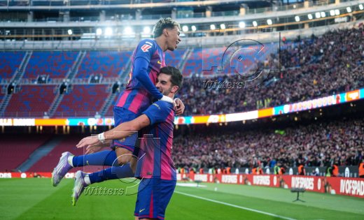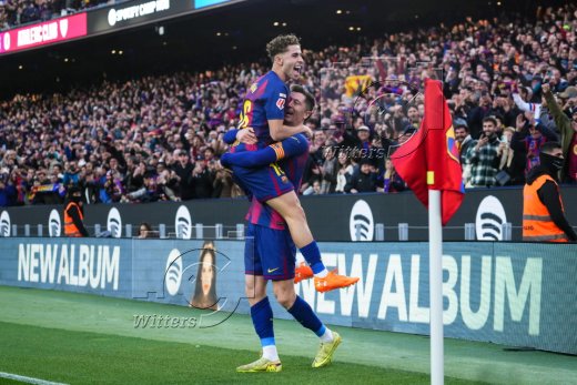 2:0 Tor, Jubel, v.l. Lamine Yamal, Torschuetze Ferran Torres (Barcelona) im umgebauten Stadion Camp Nou