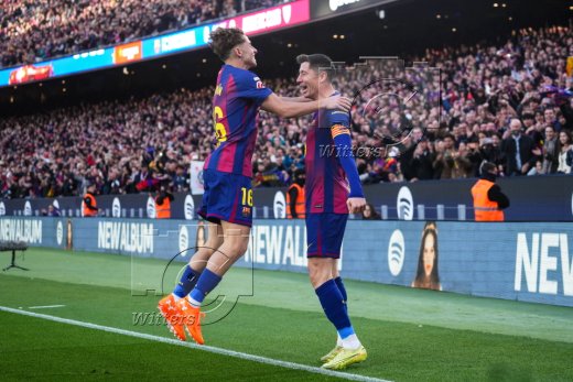 1:0 Tor, Jubel, v.l. Fermin Lopez, Torschuetze Robert Lewandowski (Barcelona)