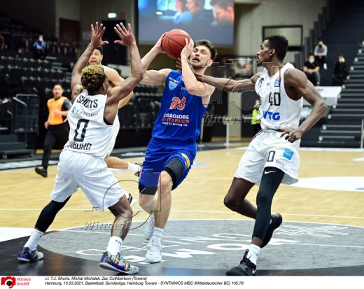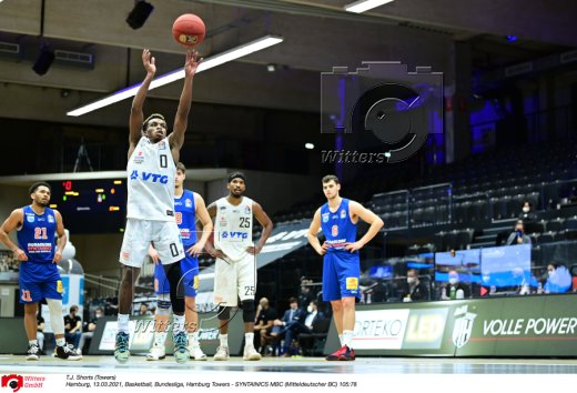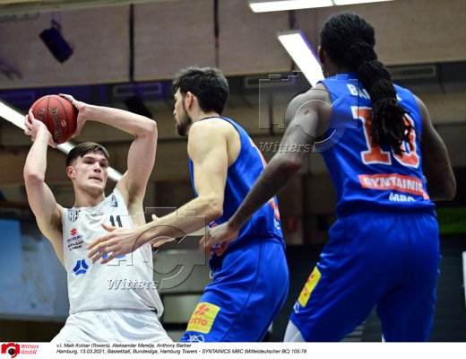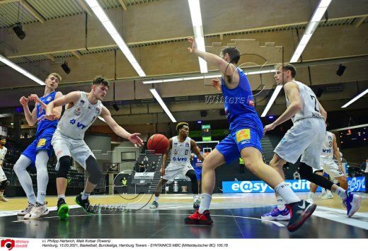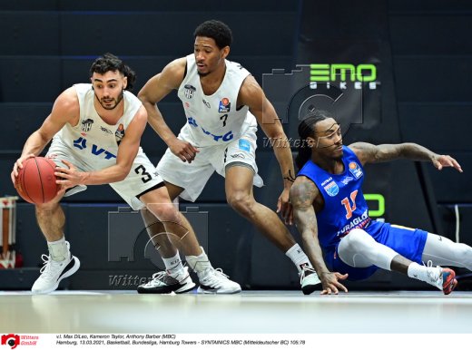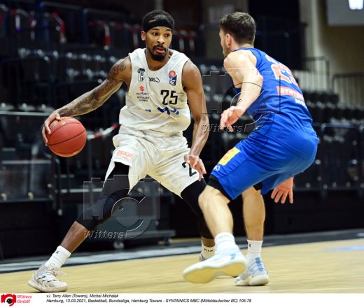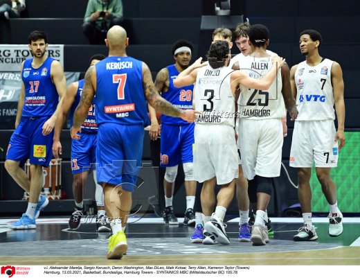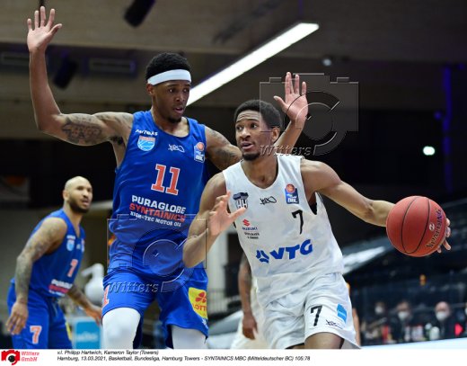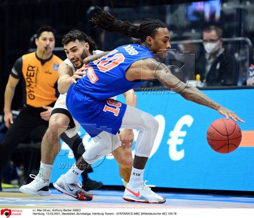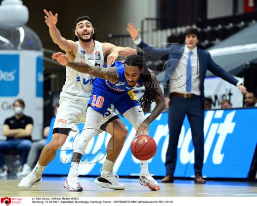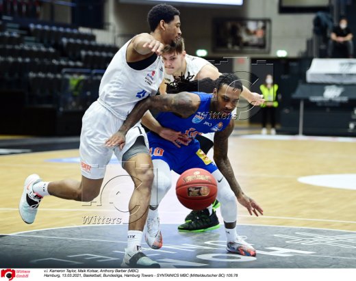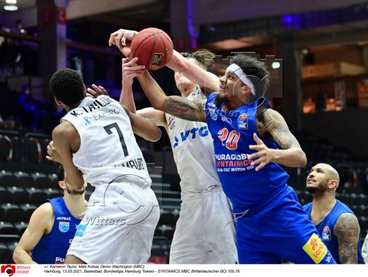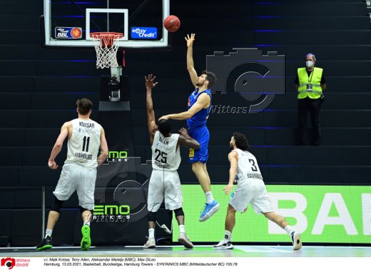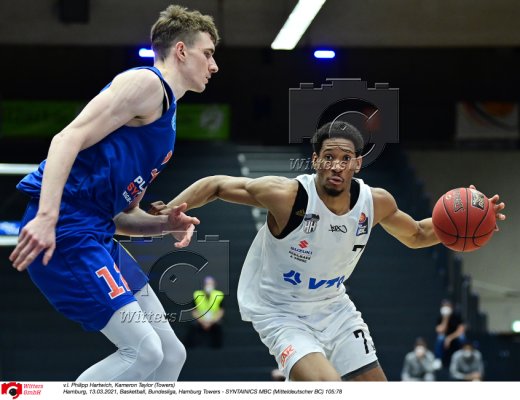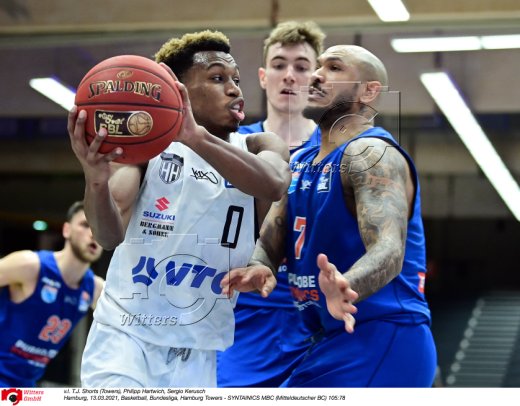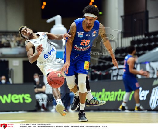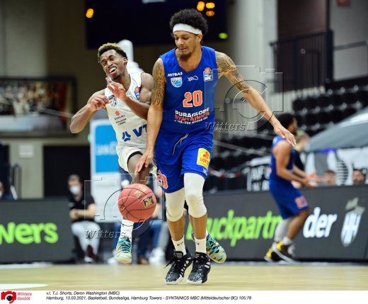 Hamburg, 13.03.2021, Basketball, Bundesliga, Hamburg Towers - SYNTAINICS MBC (Mitteldeutscher BC) 105:78