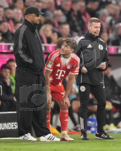 v.l. Trainer Vincent Kompany (Bayern), Jamal Musiala