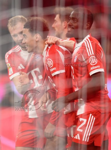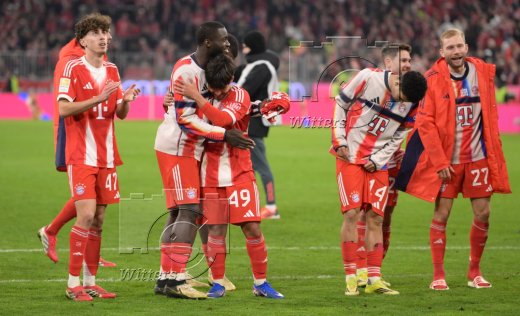 Schlussjubel v.l. David Santos Daiber, Dayot Upamecano, Maycon Douglas Normanha Cardozo, Luis Diaz, Konrad Laimer (Bayern)