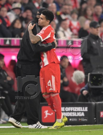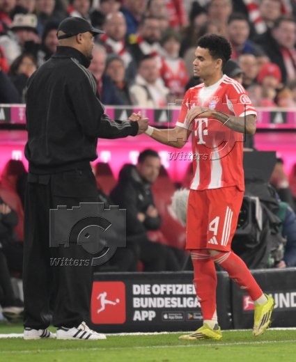 v.l. Trainer Vincent Kompany (Bayern), Luis Diaz