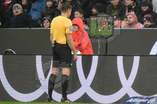 v.l. Jamal Musiala (Bayern), Schiedsrichter Tobias Reichel
