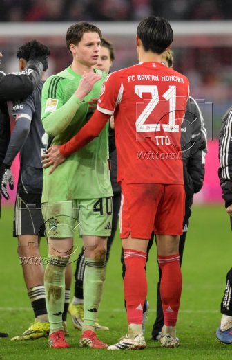 Schlussjubel v.l. Torwart Jonas Urbig (Bayern), Hiroki Ito