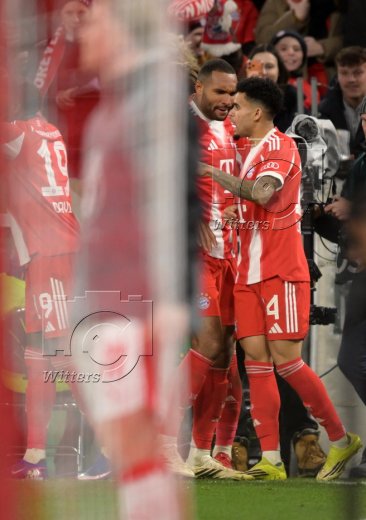 2:0 Tor, Jubel, v.l. Jonathan Tah, Torschuetze Luis Diaz (Bayern)