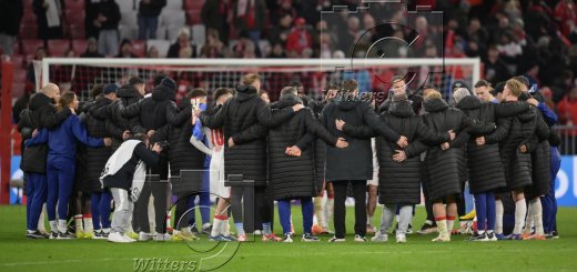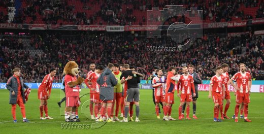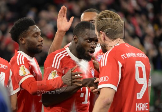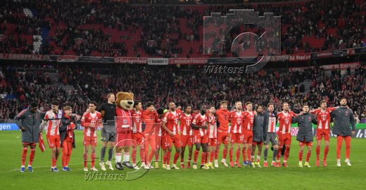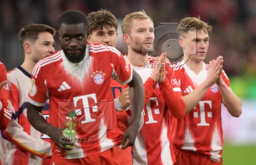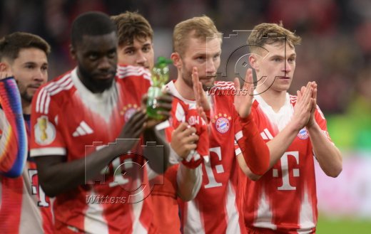 Schlussjubel v.l. Raphael Guerreiro, Dayot Upamecano, Tom Bischof, Konrad Laimer, Joshua Kimmich (Bayern)