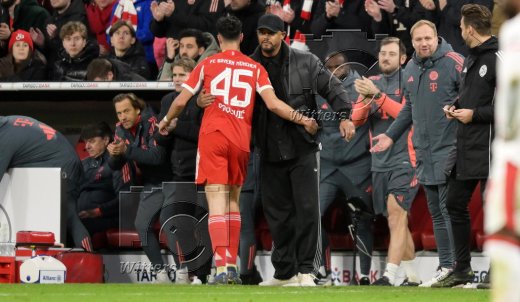 v.l. Aleksandar Pavlovic, Trainer Vincent Kompany (Bayern)