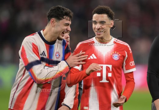 Schlussjubel v.l. Aleksandar Pavlovic, Jamal Musiala (Bayern)