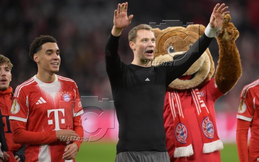 Schlussjubel v.l. Jamal Musiala, Torwart Manuel Neuer (Bayern)