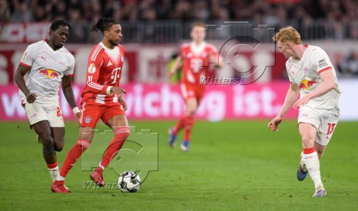 v.l. Castello Lukeba, Michael Olise (Bayern), Nicolas Seiwald