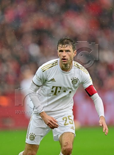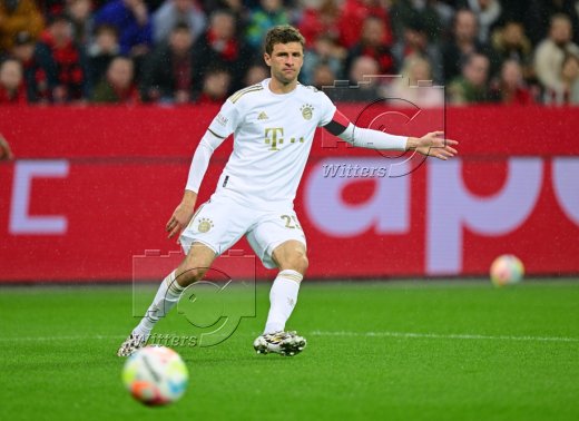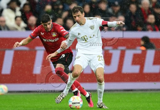 v.l. Piero Hincapie, Thomas Mueller (Bayern)