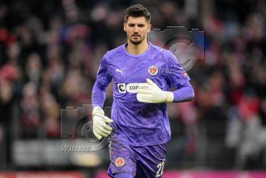 v.l. Josip Stanisic (Bayern), Eric Smith, Torwart Nikola Vasilj (St. Pauli)