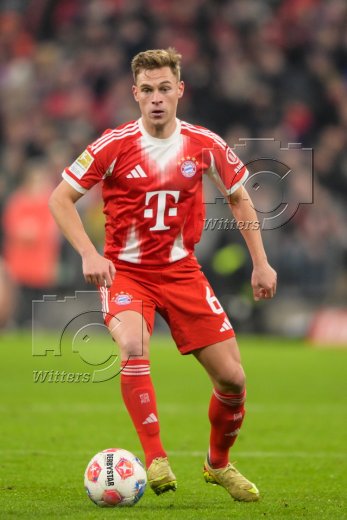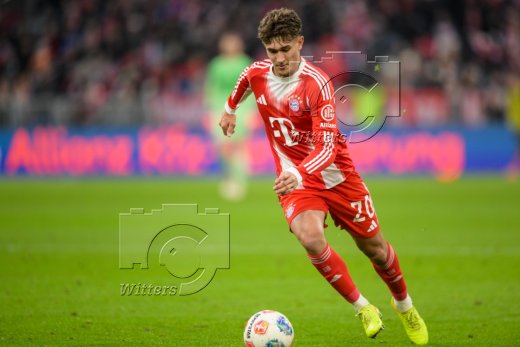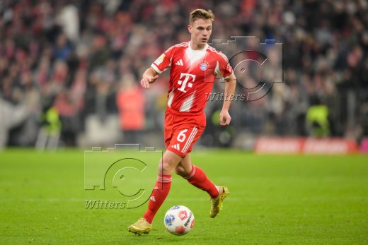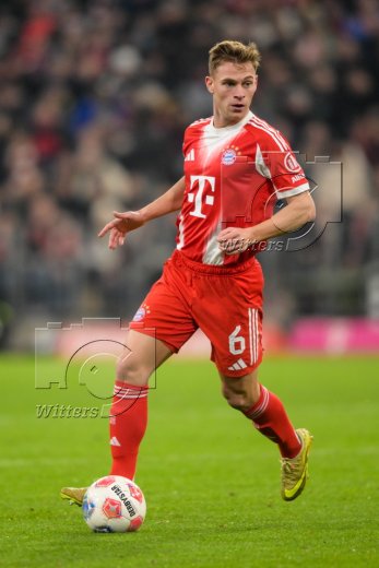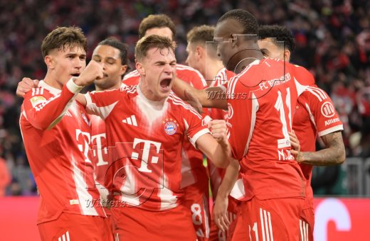 2:1 Tor, Jubel, v.l. Tom Bischof, Joshua Kimmich, Nicolas Jackson, Torschuetze Luis Diaz (Bayern)
