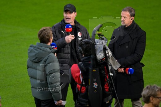 v.l. Moderator Michael Leopold (Sky), Trainer Alexander Blessin (St. Paui), TV-Experte Fredi Bobic