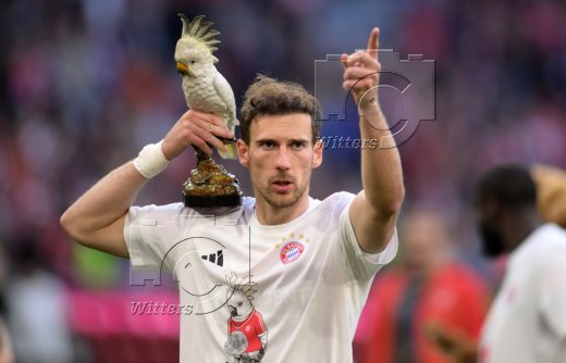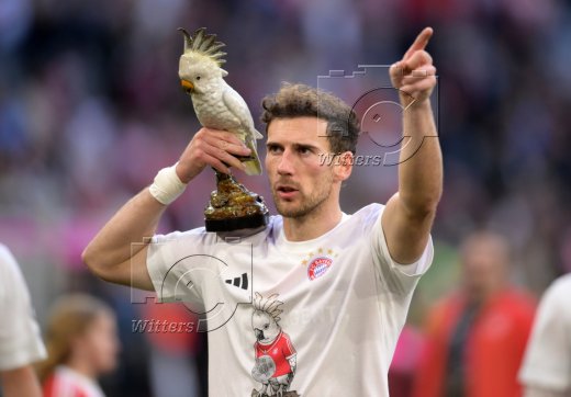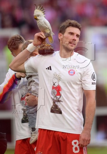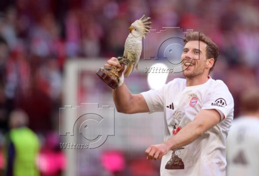 FC Bayern Muenchen, Deutscher Meister 2026, Leon Goretzka mit Porzellan-Kakadu