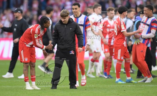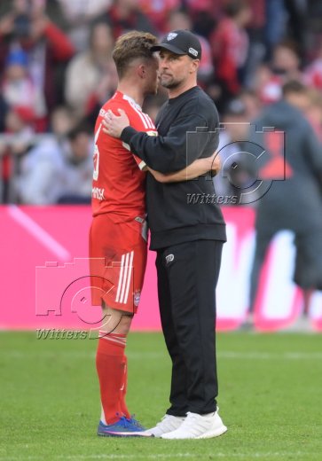 FC Bayern Muenchen, Deutscher Meister 2026, v.l. Tom Bischof, Trainer Vincent Kompany (Bayern)