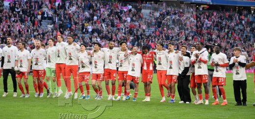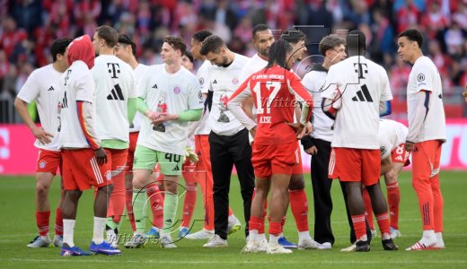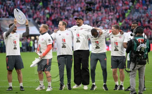FC Bayern Muenchen, Deutscher Meister 2026, Trainer Vincent Kompany (Bayern) mit Trainerstab und Funktionsteam