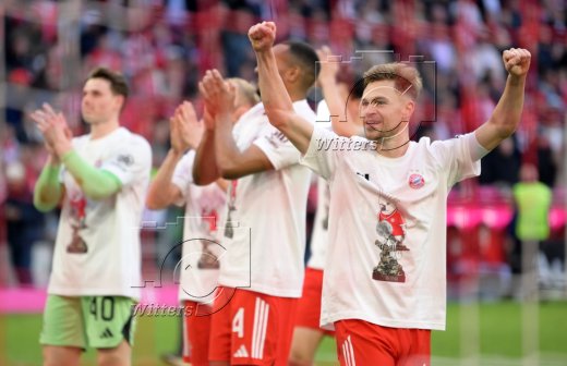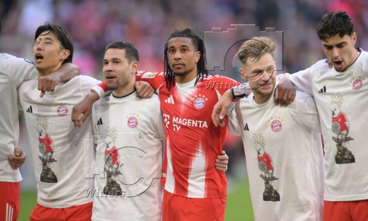FC Bayern Muenchen, Deutscher Meister 2026 v.l. Hiroki Ito, Raphael Guerreiro, Michael Olise, Joshua Kimmich, Aleksandar Pavlovic