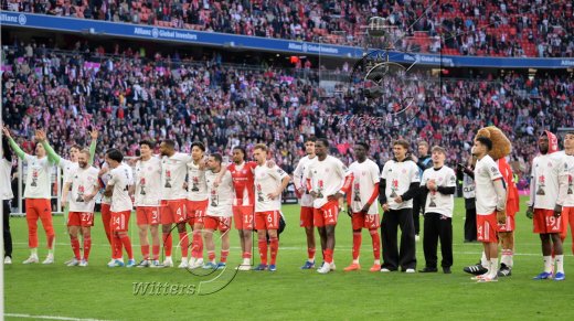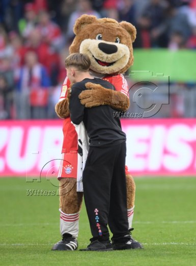 FC Bayern Muenchen, Deutscher Meister 2026 v.l. Maskottchen Berni, Lennart Karl