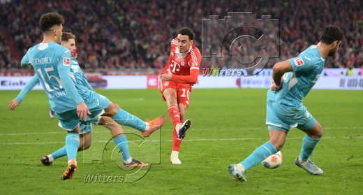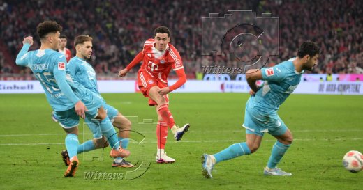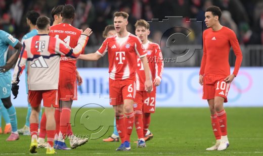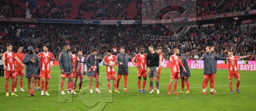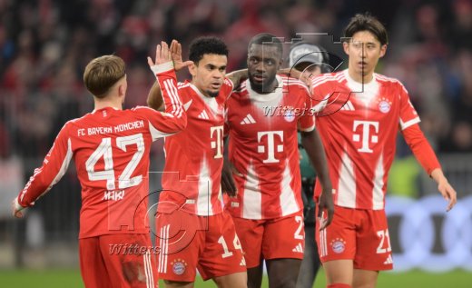 Schlussjubel v.l. Hiroki Ito, Joshua Kimmich, Luis Diaz, Jamal Musiala (Bayern)