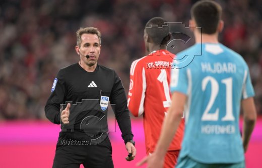 v.l. Schiedsrichter Tobias Stieler, Nicolas Jackson (Bayern)