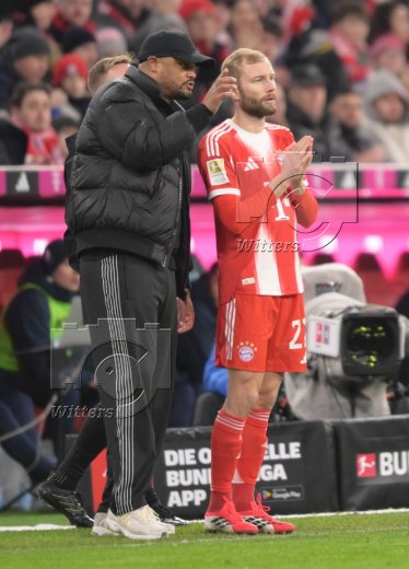 v.l. Trainer Vincent Kompany (Bayern), Konrad Laimer