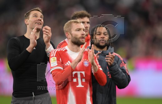 Schlussjubel, v.l. Torwart Manuel Neuer (Bayern), Konrad Laimer, Serge Gnabry