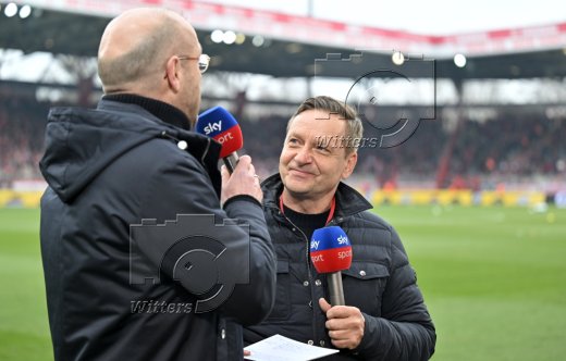 v.l. Moderator Patrick Wasserziehr (Sky), Horst Heldt (Geschaeftsfuehrer Profifussball, Union)