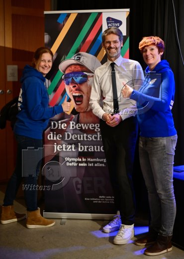 v.l. Katrin Gauler (HSB), Steffen Ruelke (Leitung Vorprojekt Olympische und Paralympische Spiele in Hamburg), Tina Hartz (HSB)