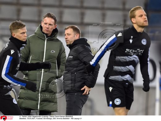 v.l. Trainer Julian Nagelsmann (Leipzig), Trainer Frank Kramer (Bielefeld)