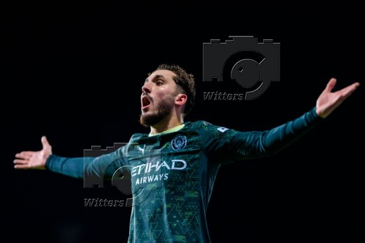 3:1 Tor, Jubel, v.l. Abdukodir Khusanov, Torschuetze Rayan Cherki (City)