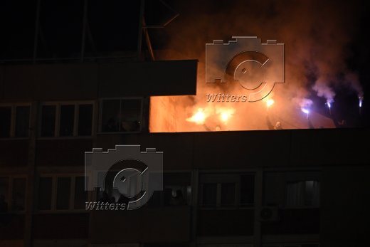 Fans Bosnien und Fans auf dem Dach eines Wohnhauses