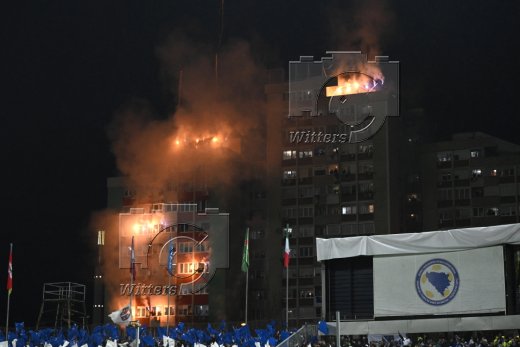 Fans Bosnien auf dem Dach eines Wohnhauses