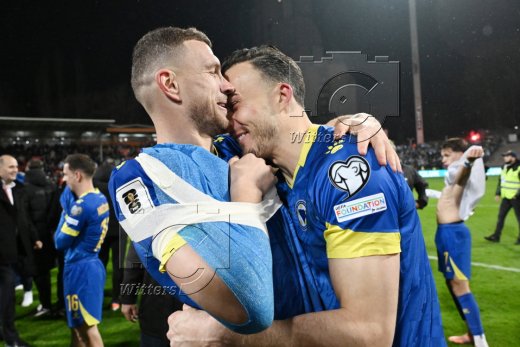 Schlussjubel, v.l. Edin Dzeko, Haris Tabakovic (Bosnien)
