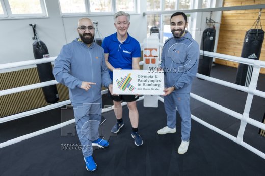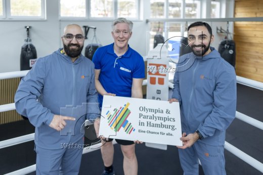 Bewerbung Olympische und Paralympische Spiele in Hamburg, v.l. Robert Harutyunyan, Christian Poon (Vorstand, Hamburger Sportbund HSB), Artem Harutyunyan