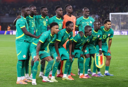 Team Senegal, hinten v.l. Antoine Mendy, Pape Gueye, Ismaila Sarr, Moussa Niakhate, Torwart Edouard Mendy, Kalidou Koulibaly, vorn v.l. Ismail Jakobs, Pape Sarr, Idrissa Gueye, Sadio Mane, Iliman Ndiaye