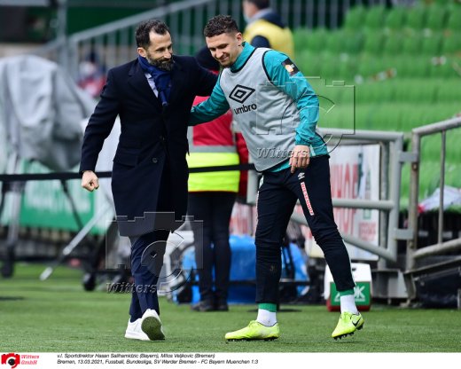 v.l. Sportdirektor Hasan Salihamidzic (Bayern), Milos Veljkovic (Bremen)