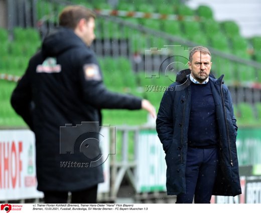 v.l. Trainer Florian Kohfeldt (Bremen), Trainer Hans-Dieter "Hansi" Flick (Bayern)