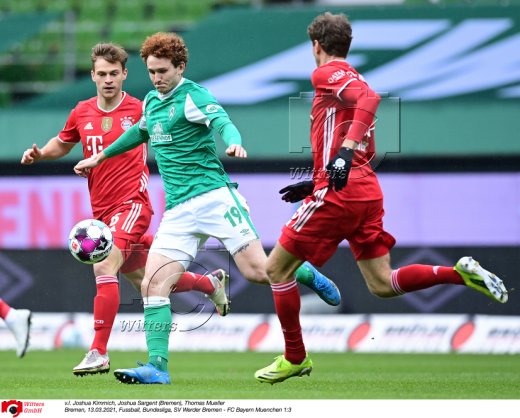 v.l. Joshua Kimmich, Joshua Sargent (Bremen), Thomas Mueller