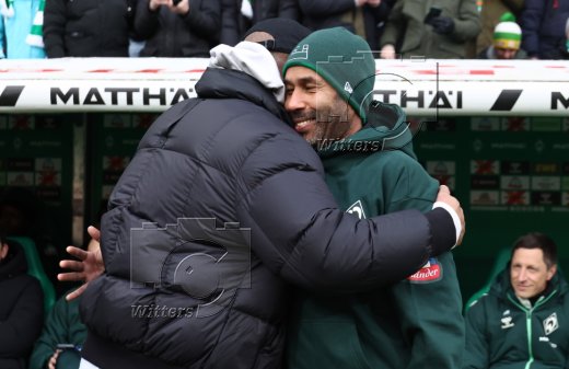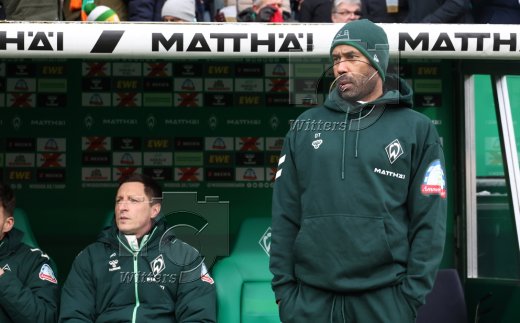 v.l. Trainer Daniel Thioune (Bremen), Justin Njinmah
